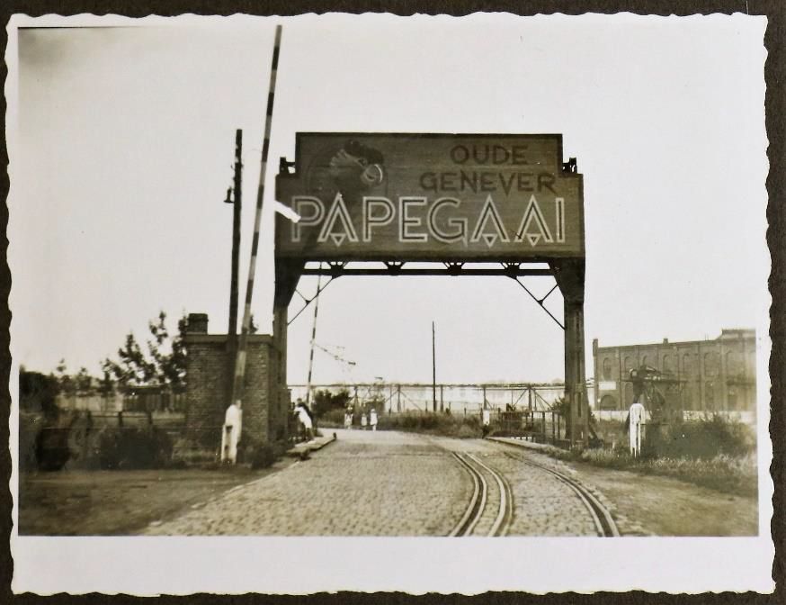 De aanleiding tot het nagaan van het ontstaan van de naam Papegaaienbrug leidt ons naar de distilleerderij de Papegaai in Delft, die door de ZNSF in 1923 is overgenomen. Deze foto was de blikvanger op pagina 36 van het boek “Bergen in Brokken” en de foto in het archief van de ZNSF.