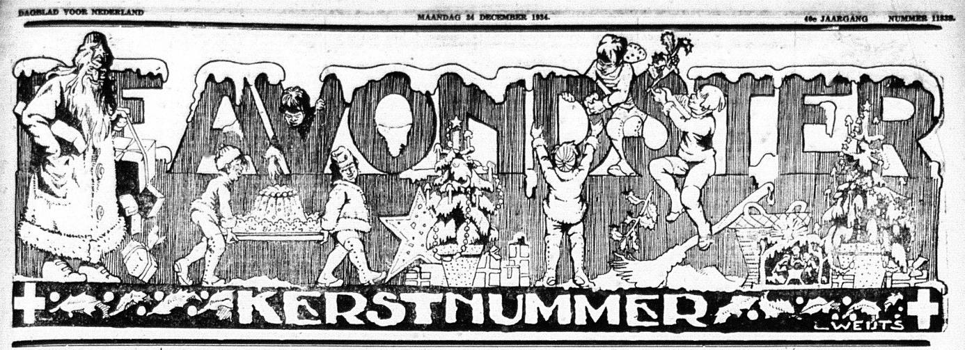 Speciale kop de Avondster Kerstmis 1934 getekend door Louis Weijts